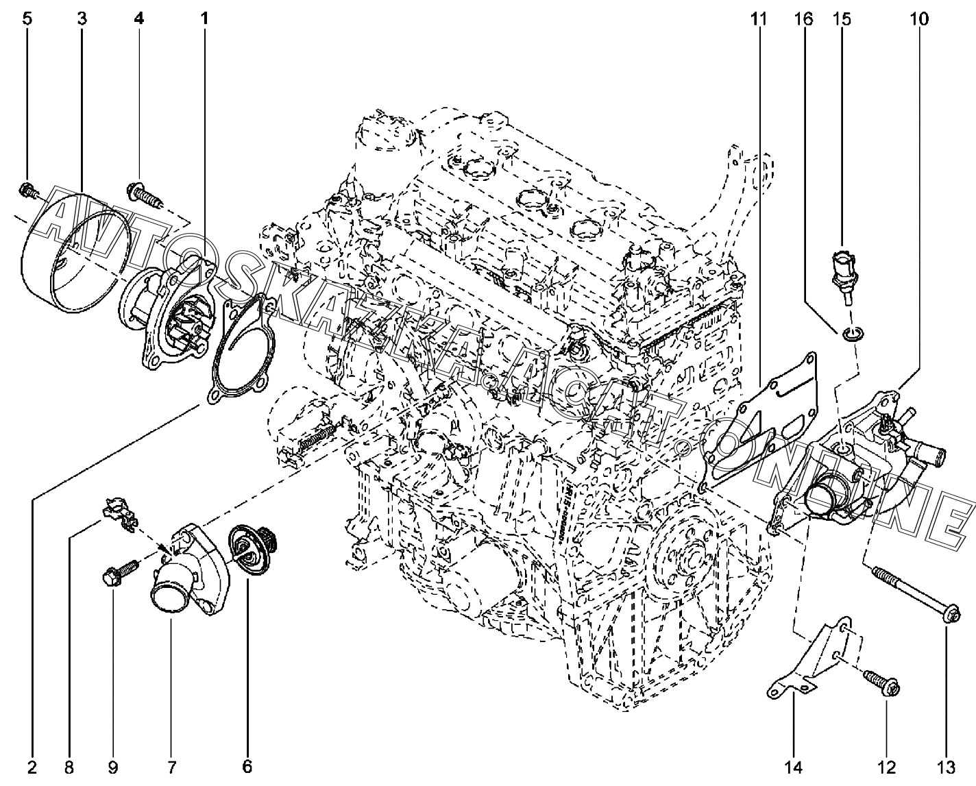 Насос водяной, термостат (Н4М) ВАЗ Vesta (2180 Lada Vesta (седан, универсал, CROSS, SW, SW CROSS, CNG, SPORT))