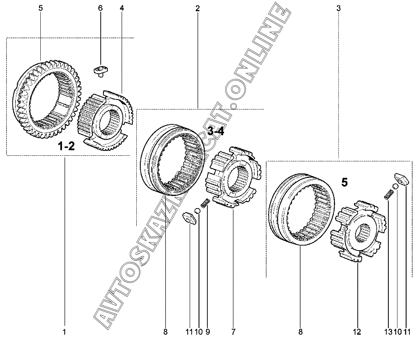 | Название детали: | Синхронизатор 1-й и 2-й передач |