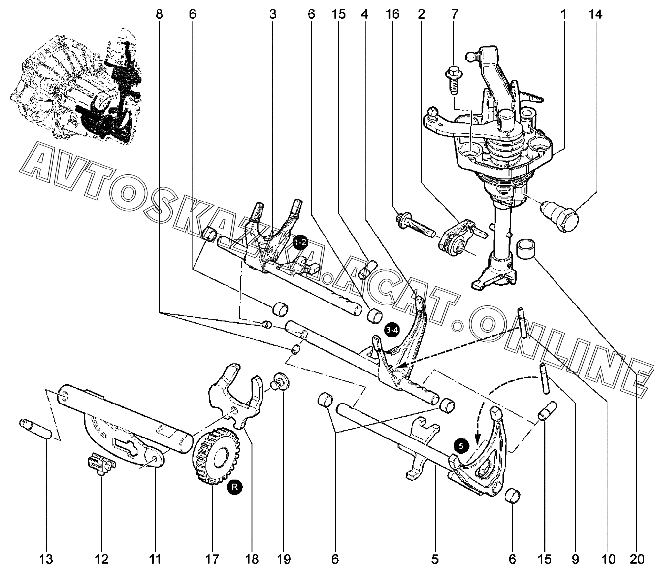 | Название детали: | Механизм выбора передач в сборе |
