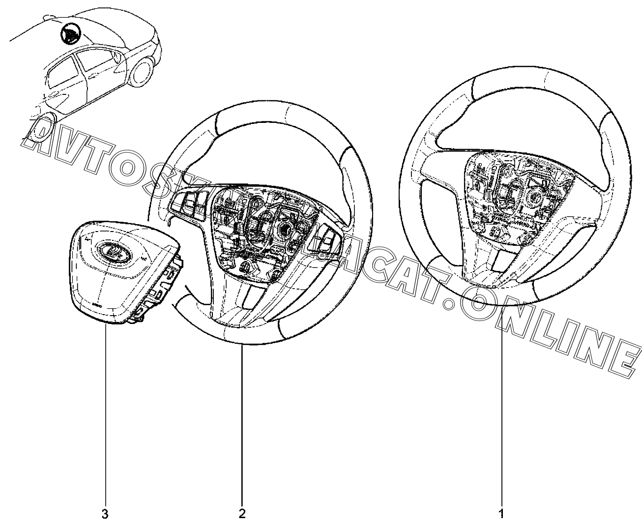 | Название детали: | Колесо рулевого управления с блоком клавиш и обогревом обода в сборе |