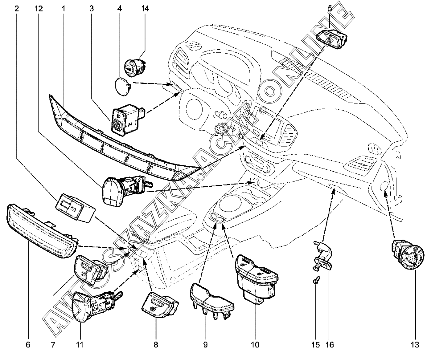 Выключатели, кнопки ВАЗ Vesta (2180 Lada Vesta (седан, универсал, CROSS, SW, SW CROSS, CNG, SPORT))