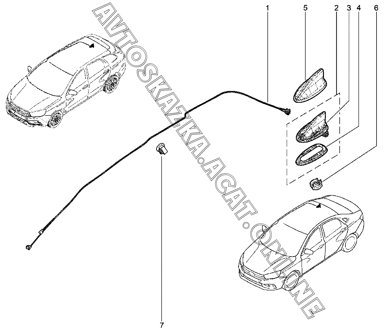 Антенна (универсал,SPORT) ВАЗ Vesta (2180 Lada Vesta (седан, универсал, CROSS, SW, SW CROSS, CNG, SPORT))