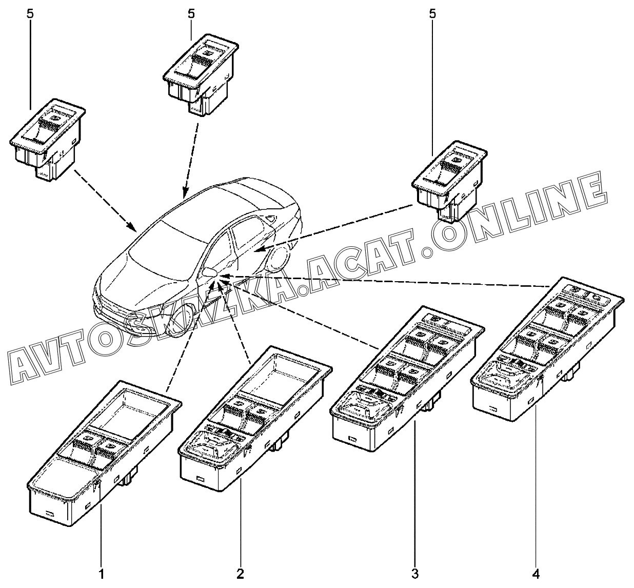 Блок переключателей стеклоподъемника ВАЗ Vesta (2180 Lada Vesta (седан, универсал, CROSS, SW, SW CROSS, CNG, SPORT))