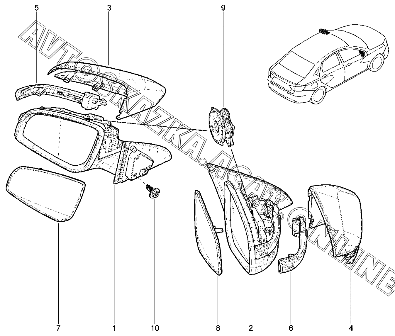 | Название детали: | Зеркало наружное правое в сборе без накладки (с электромеханизмом складывания) |