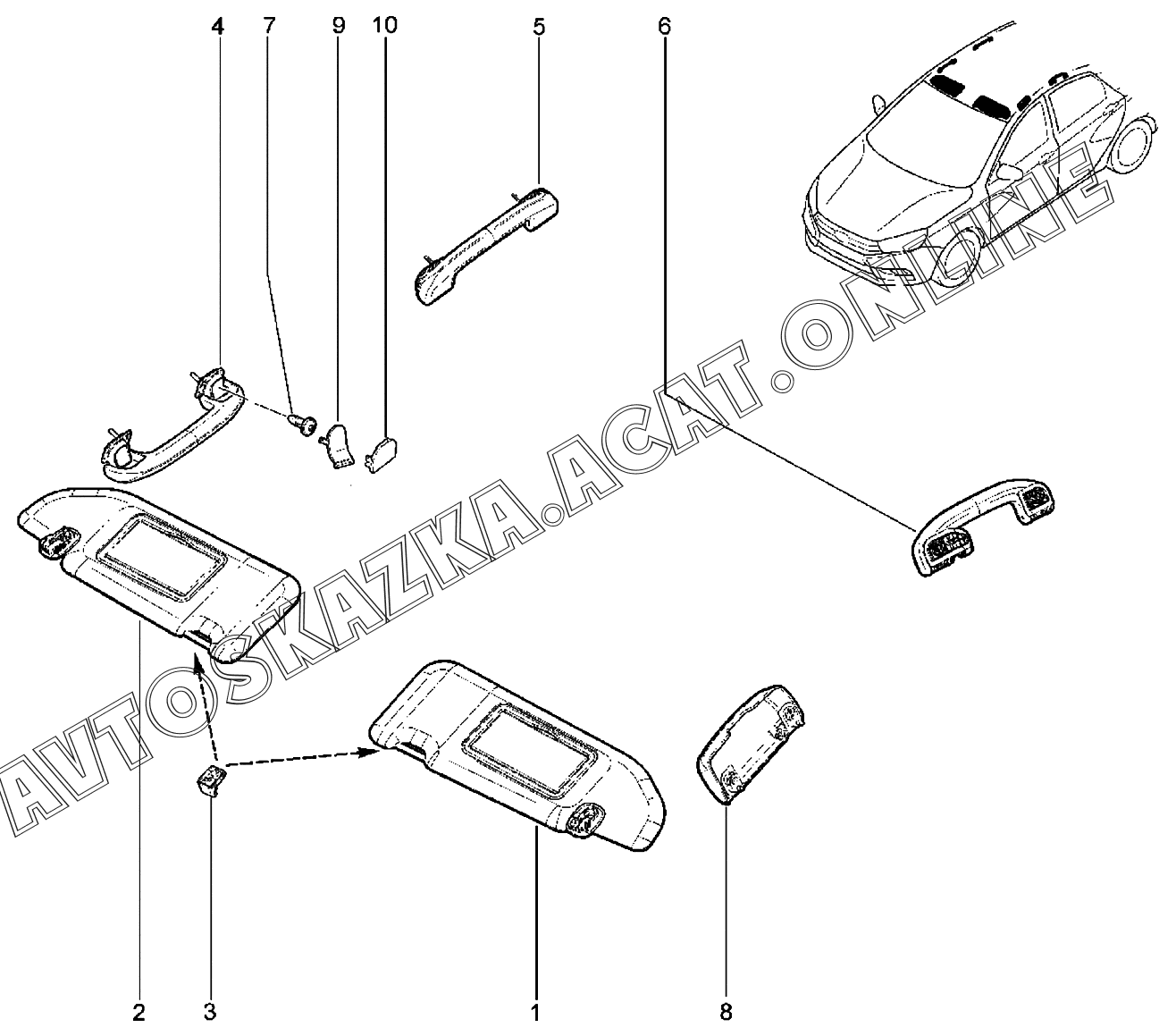 | Название детали: | Держатель противосолнечного козырька |