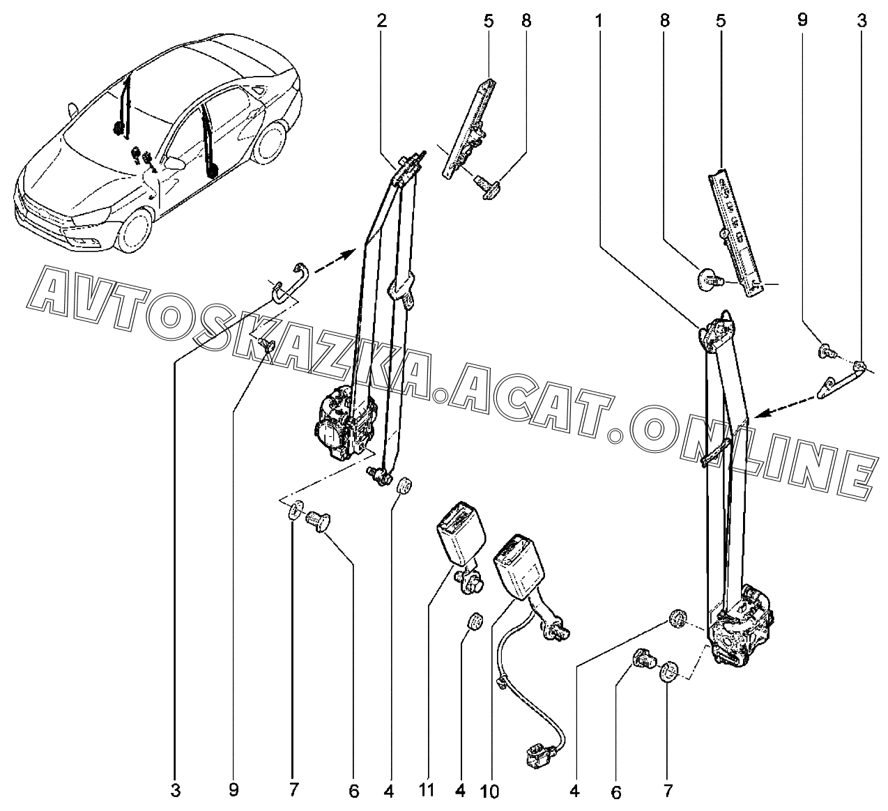 Ремни безопасности передние ВАЗ Vesta (2180 Lada Vesta (седан, универсал, CROSS, SW, SW CROSS, CNG, SPORT))