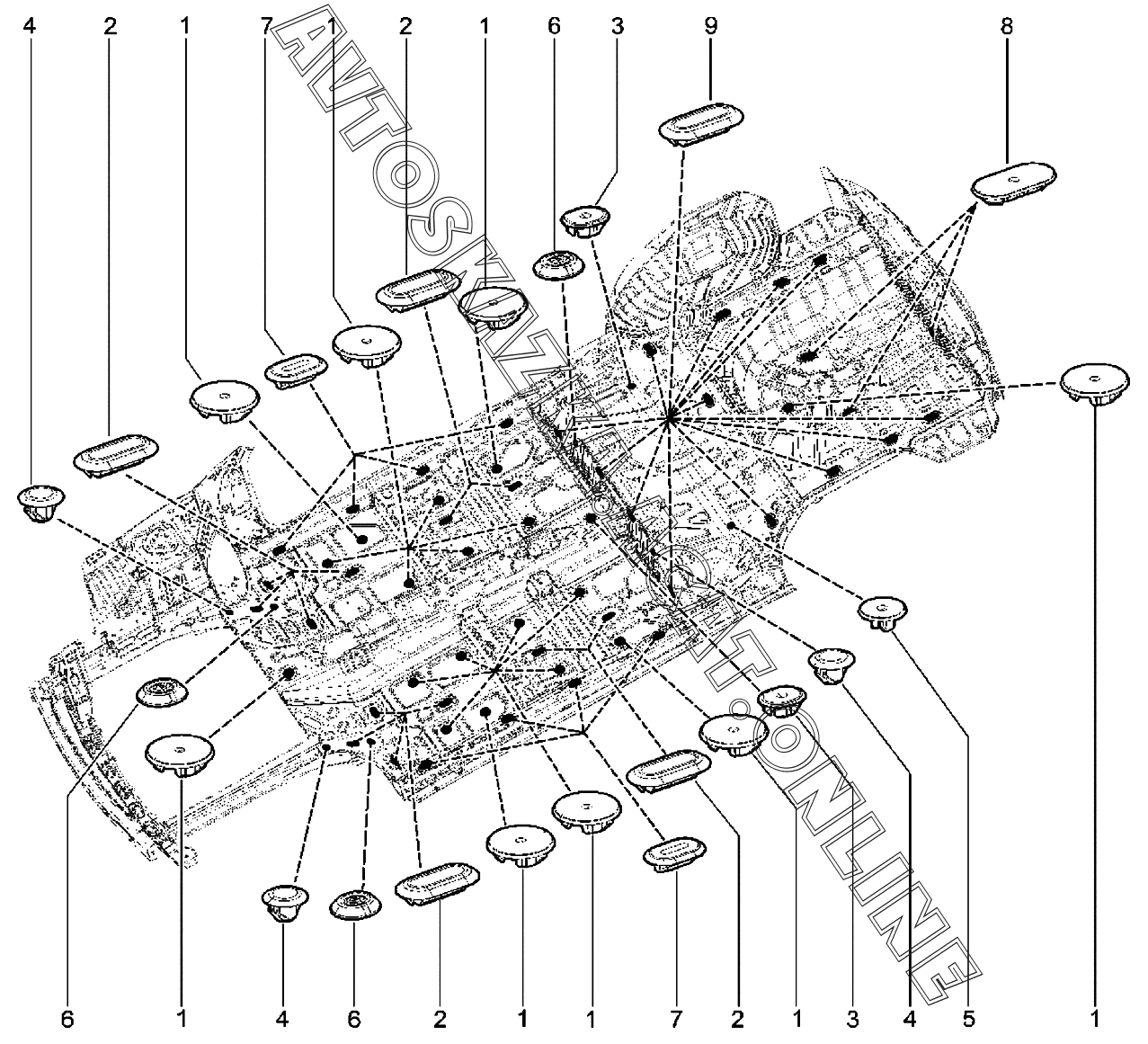 Заглушки пола кузова ВАЗ Vesta (2180 Lada Vesta (седан, универсал, CROSS, SW, SW CROSS, CNG, SPORT))