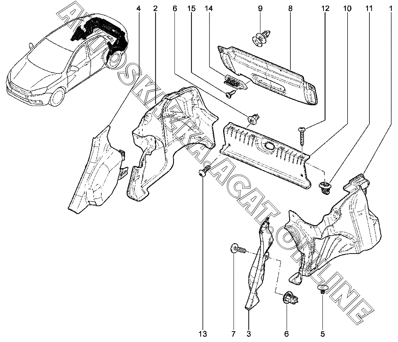Обивка боковины арки багажника (седан) ВАЗ Vesta (2180 Lada Vesta (седан, универсал, CROSS, SW, SW CROSS, CNG, SPORT))