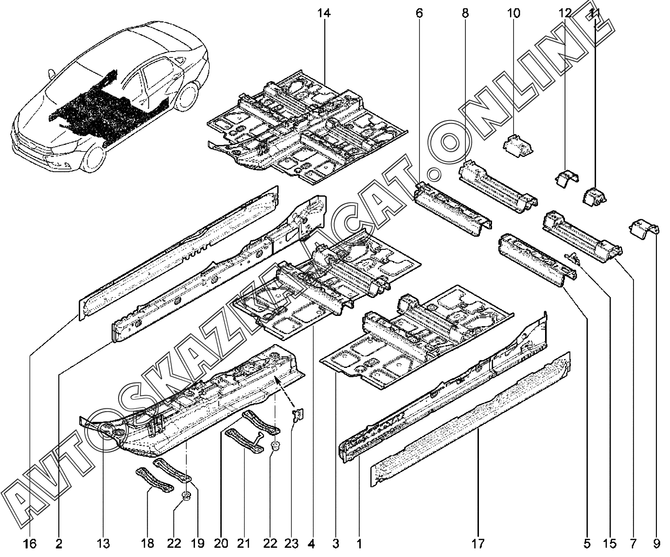 Элементы нижние средние ВАЗ Vesta (2180 Lada Vesta (седан, универсал, CROSS, SW, SW CROSS, CNG, SPORT))