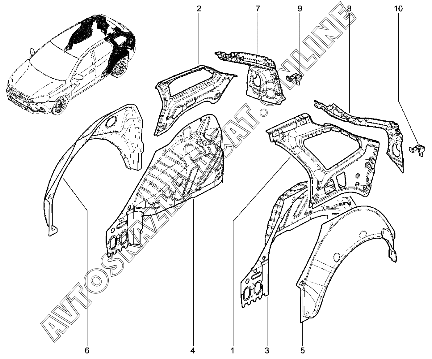 Панели боковины внутренние (разузловка) ВАЗ Vesta (2180 Lada Vesta (седан, универсал, CROSS, SW, SW CROSS, CNG, SPORT))