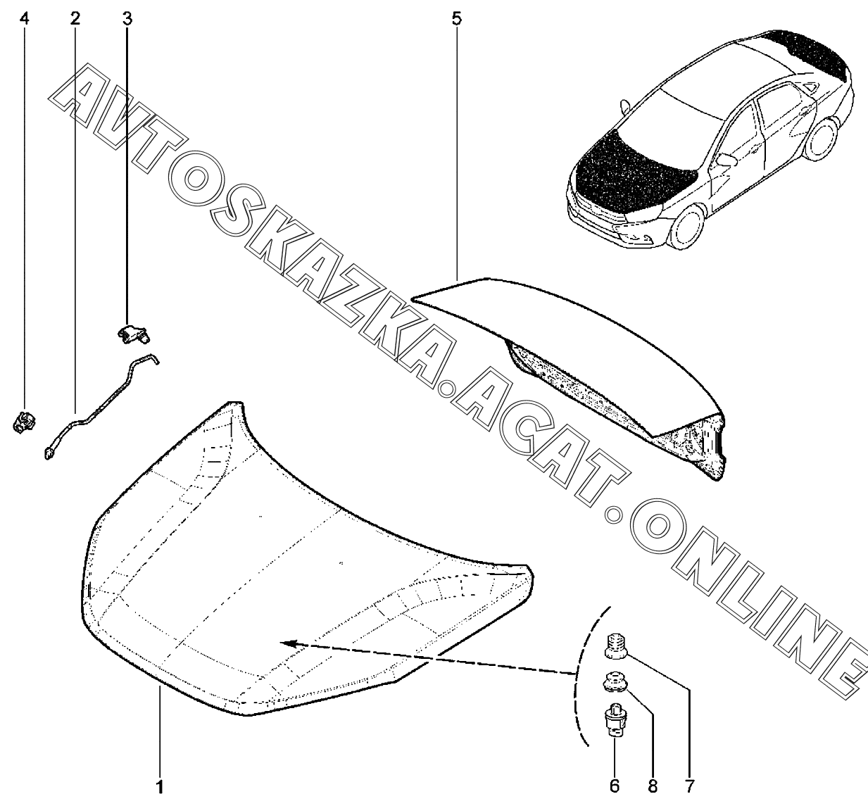 Капот и крышка багажника ВАЗ Vesta (2180 Lada Vesta (седан, универсал, CROSS, SW, SW CROSS, CNG, SPORT))
