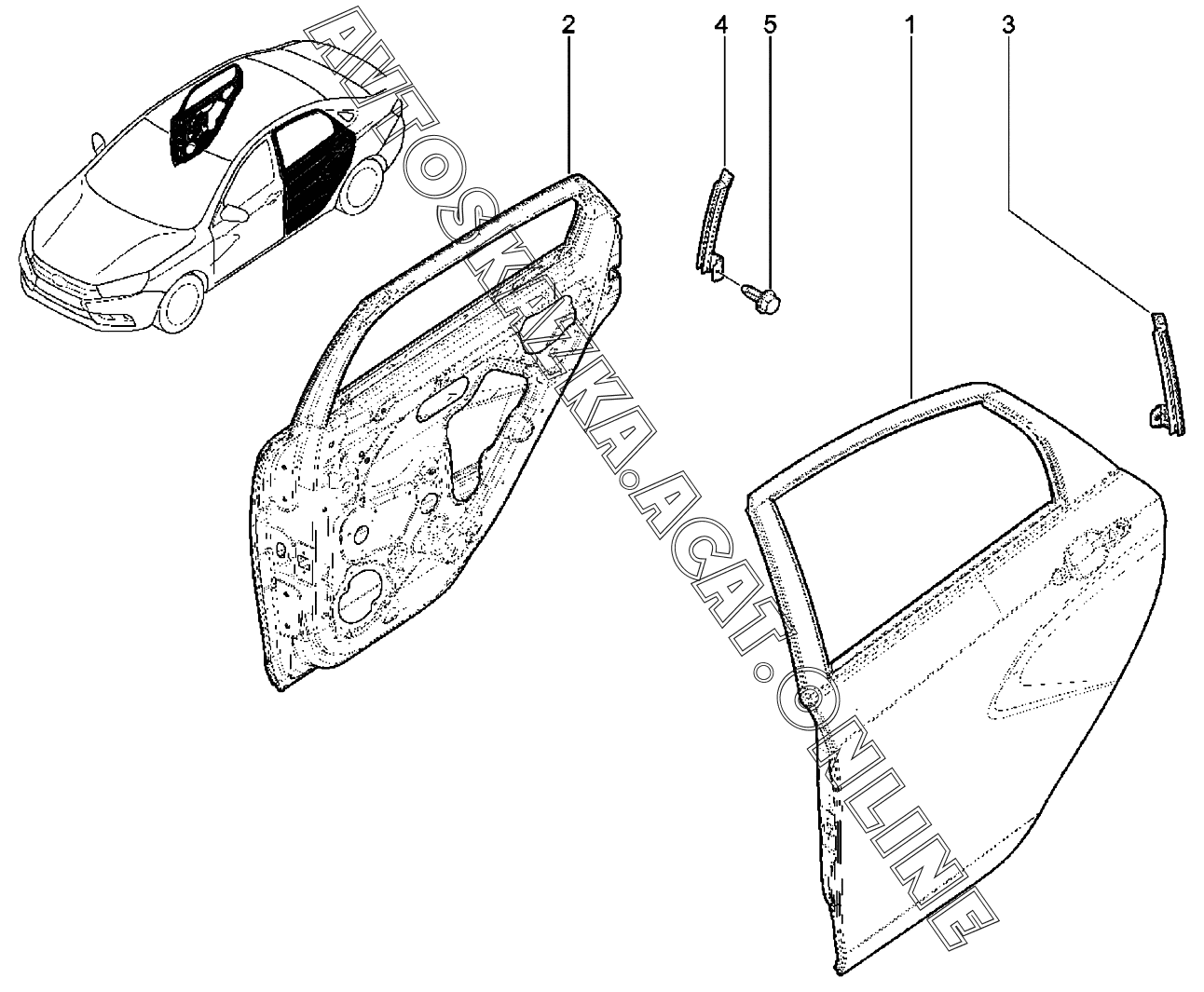 Двери задние (седан) ВАЗ Vesta (2180 Lada Vesta (седан, универсал, CROSS, SW, SW CROSS, CNG, SPORT))