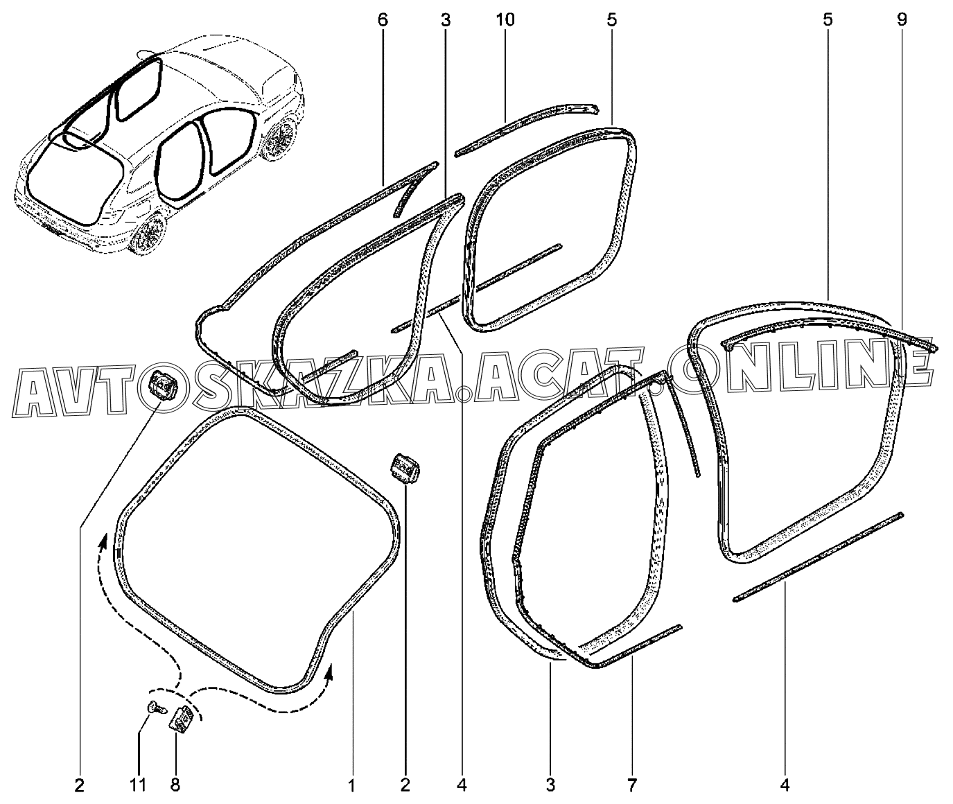 | Название детали: | Уплотнитель проема задней двери |