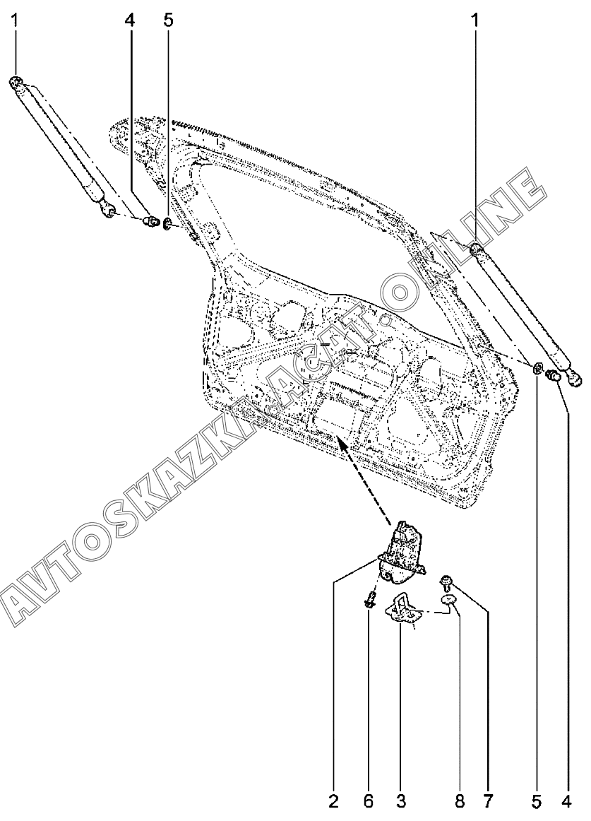 | Название детали: | Упор газовый двери задка с обоймами шарниров |