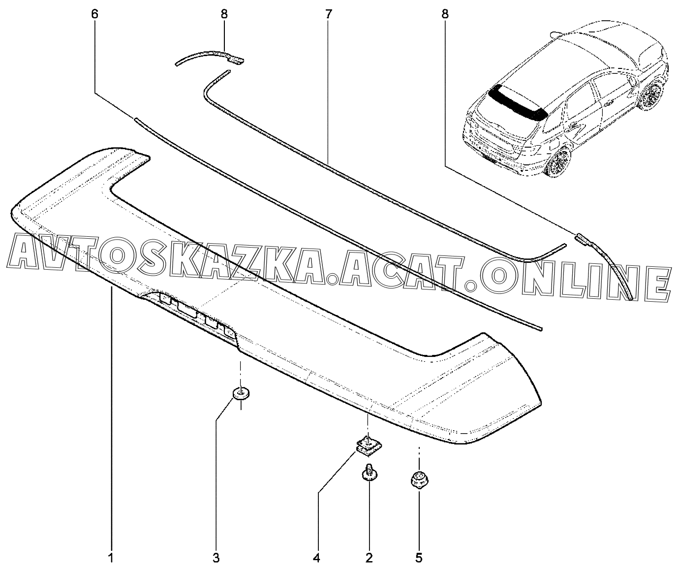| Название детали: | Спойлер с кронштейном в сборе (не окрашенный) |
