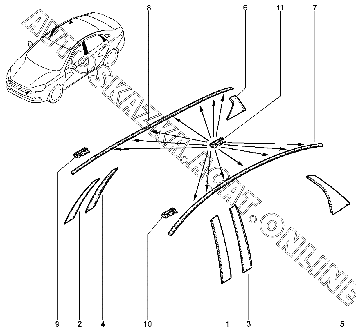 Накладки стоек дверей (седан) ВАЗ Vesta (2180 Lada Vesta (седан, универсал, CROSS, SW, SW CROSS, CNG, SPORT))
