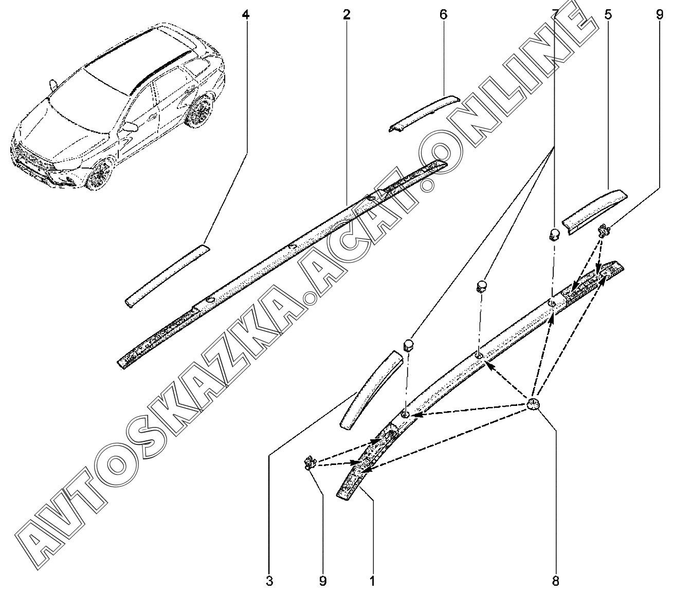 | Название детали: | Профиль ложемента багажника крыши с опорами в сборе левый (серебристый цвет) |