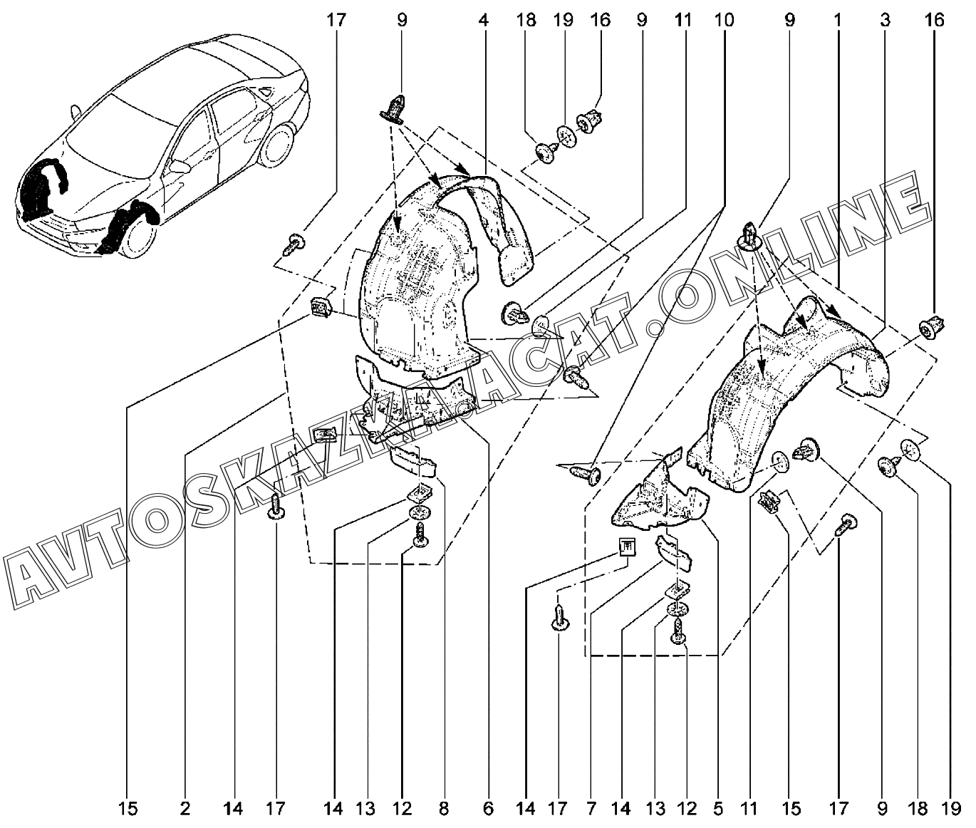| Название детали: | Щиток переднего крыла правый (ворсовый) |