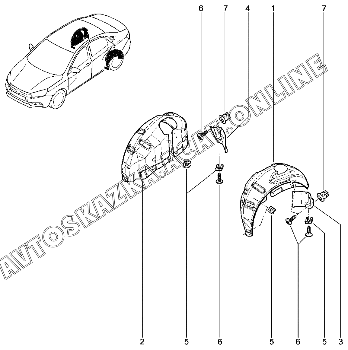 Щитки арок задних колес ВАЗ Vesta (2180 Lada Vesta (седан, универсал, CROSS, SW, SW CROSS, CNG, SPORT))