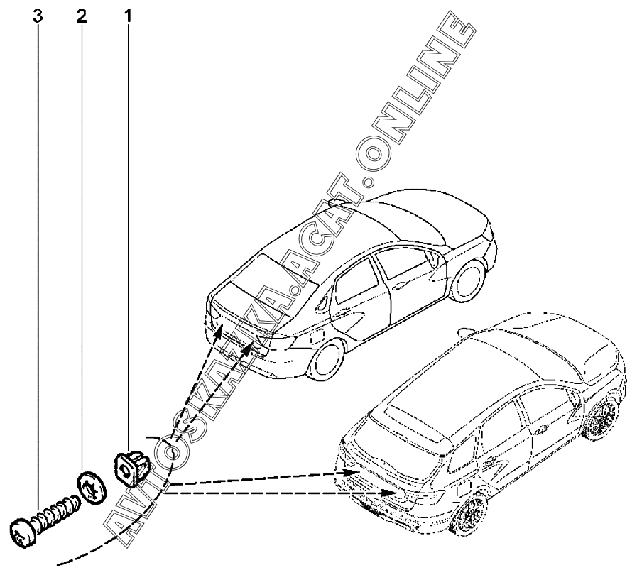 Комплект крепления номерного знака ВАЗ Vesta (2180 Lada Vesta (седан, универсал, CROSS, SW, SW CROSS, CNG, SPORT))