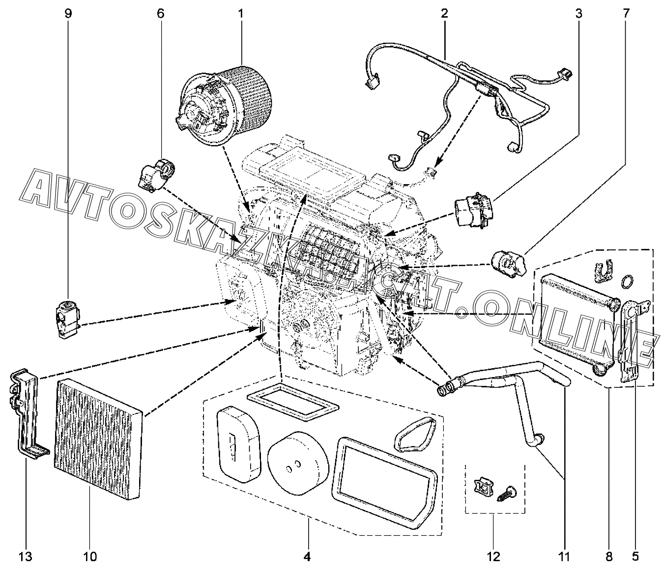 Отопитель (деталировка) ВАЗ Vesta (2180 Lada Vesta (седан, универсал, CROSS, SW, SW CROSS, CNG, SPORT))