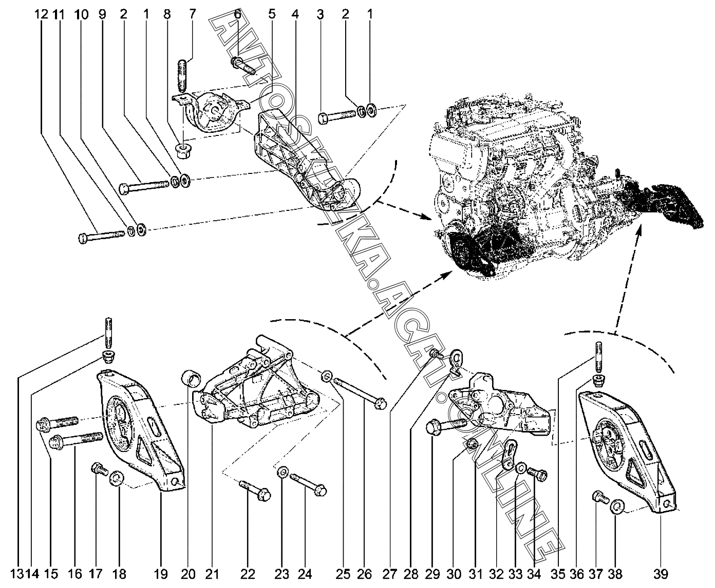 | Название детали: | Опора подвески двигателя левая в сборе |