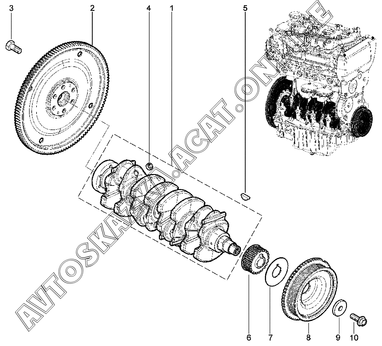 Вал коленчатый, маховик (P4M-BVA4) ВАЗ Granta (2190, 2191 Lada Granta (седан, лифтбек, хэтчбек, универсал, FL, CROSS))