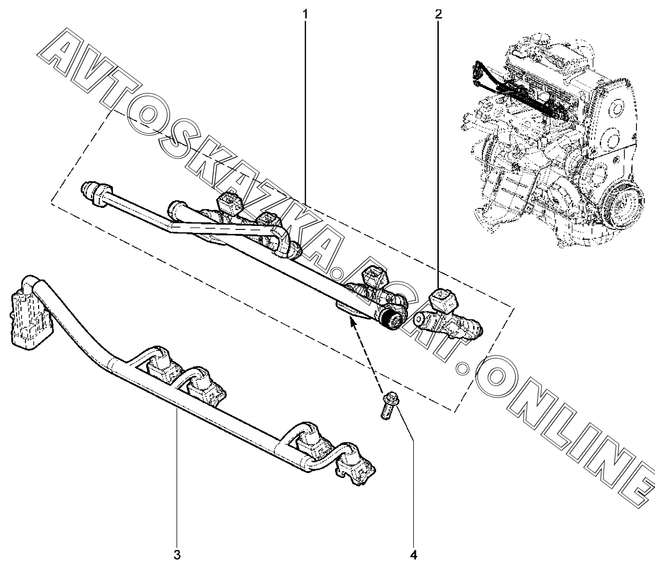 | Название детали: | Рампа форсунок в сборе |