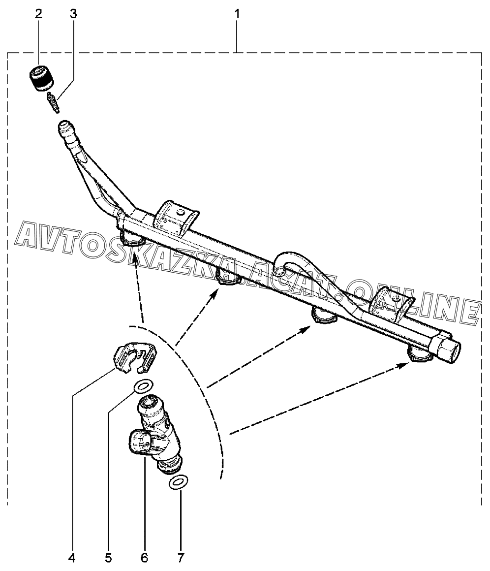 Рампа топливная (P4M-BVM5,BVR5)(деталировка) ВАЗ Granta (2190, 2191 Lada Granta (седан, лифтбек, хэтчбек, универсал, FL, CROSS))