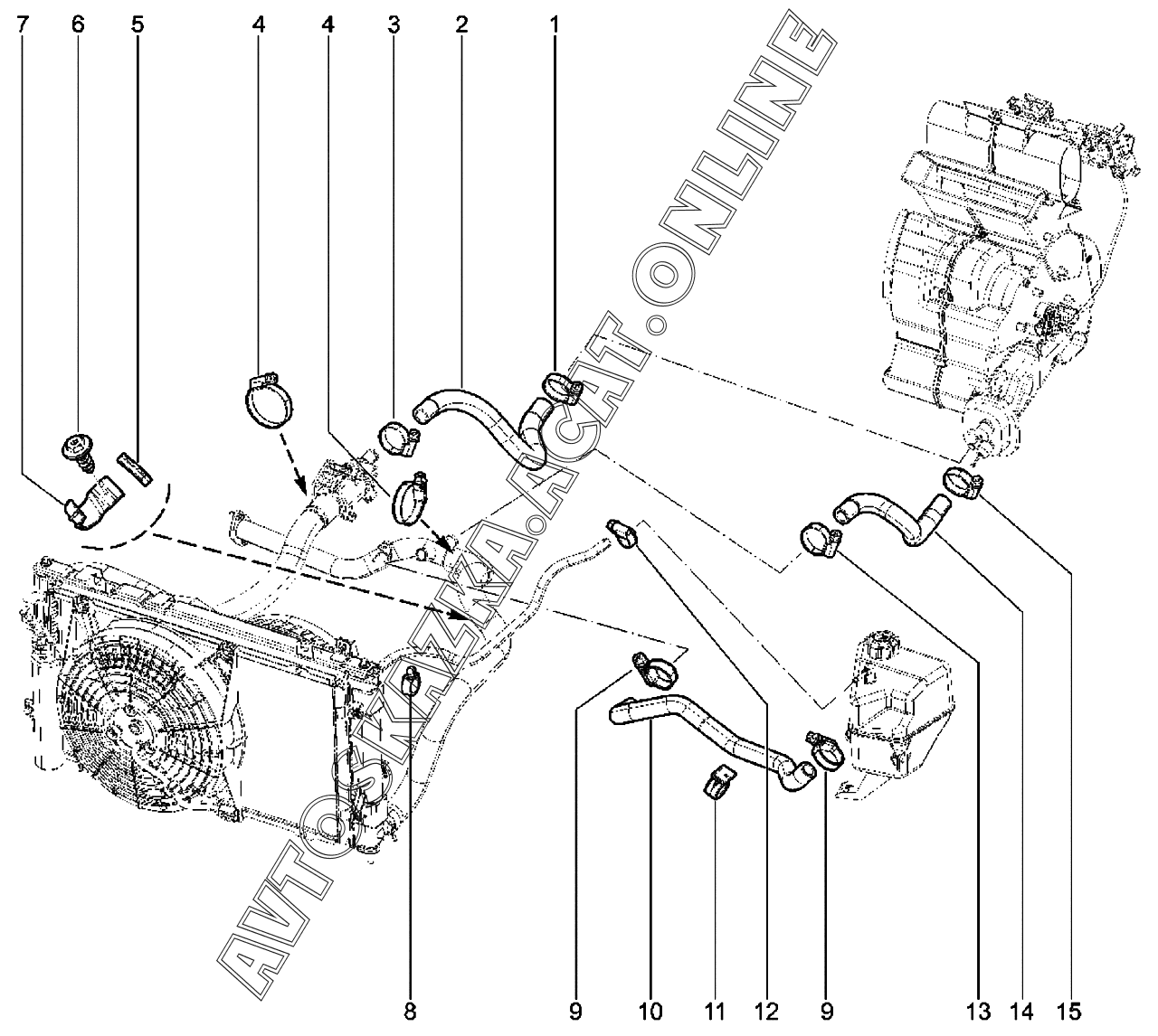 Шланги системы охлаждения двигателя (BVM5, BVA4) ВАЗ Granta (2190, 2191 Lada Granta (седан, лифтбек, хэтчбек, универсал, FL, CROSS))