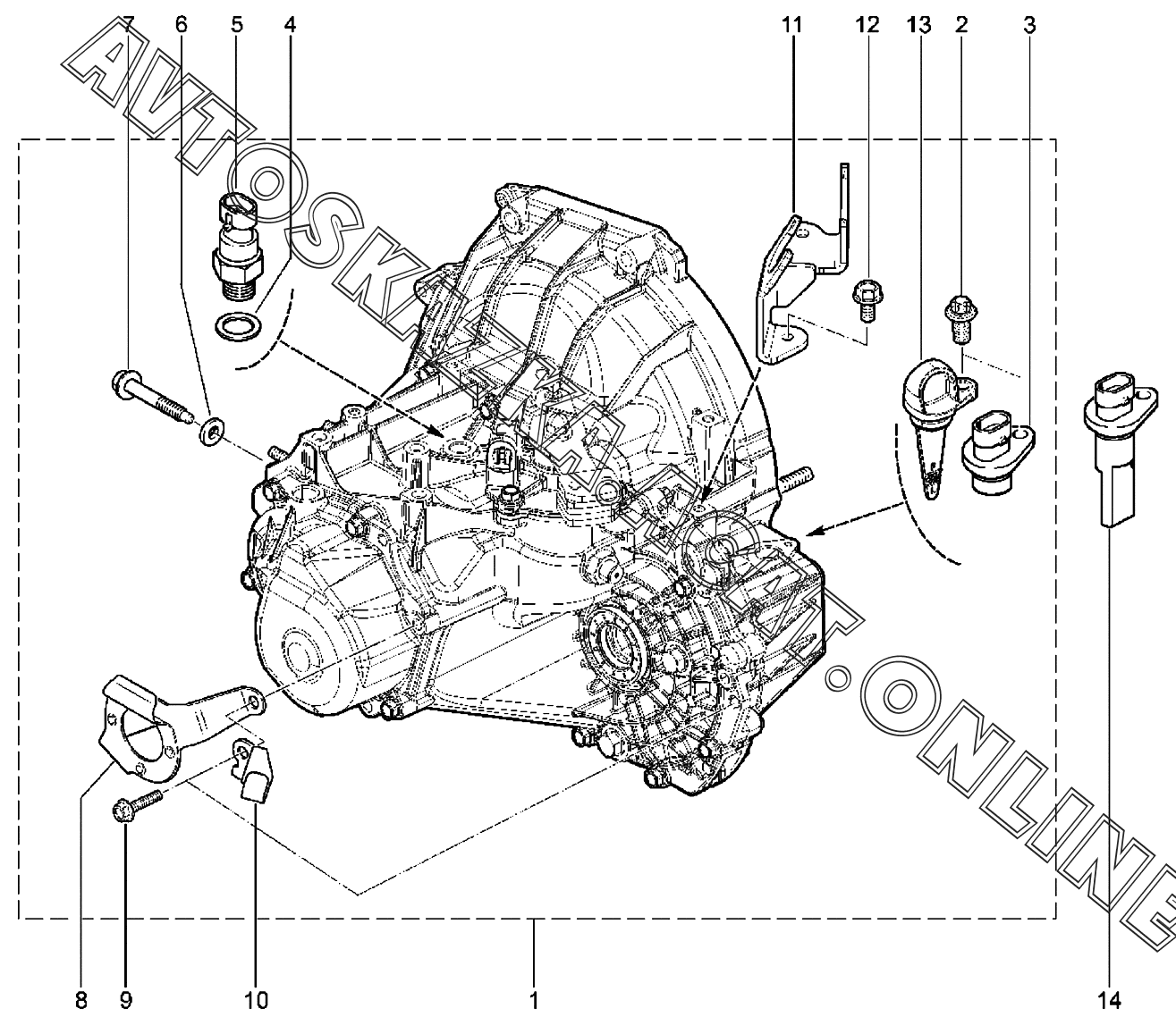 Коробка передач без чехла и вилки выключения сцепления в сборе (с датчиком выключенной передачи)(FL)
