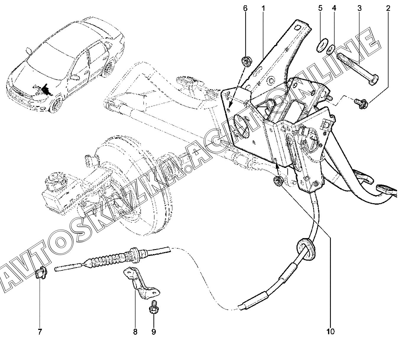 | Название детали: | Педали сцепления и тормоза с кронштейнами и тросом в сборе |