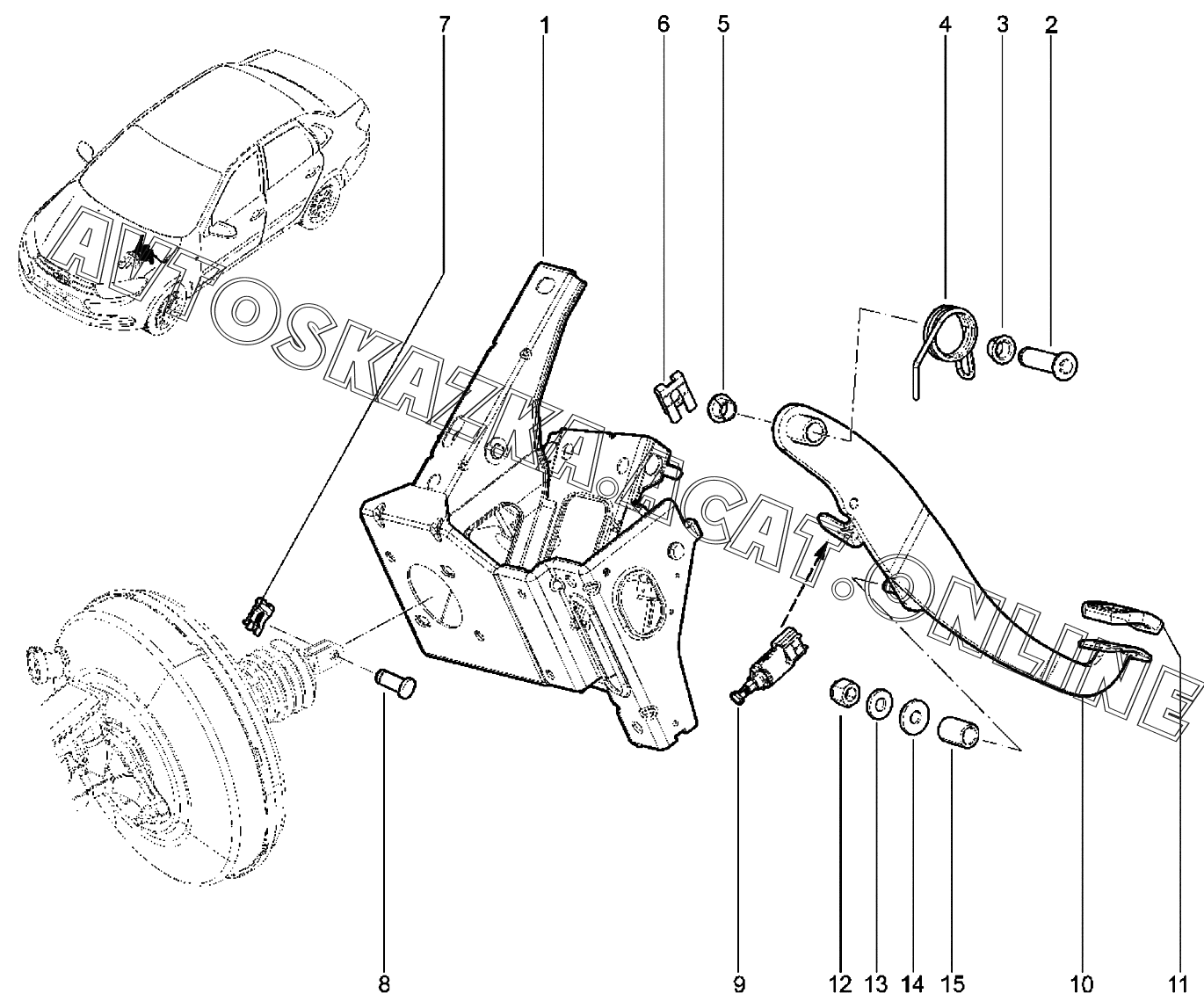 | Название детали: | Усилитель с кронштейнами педалей сцепления и тормоза в сборе |