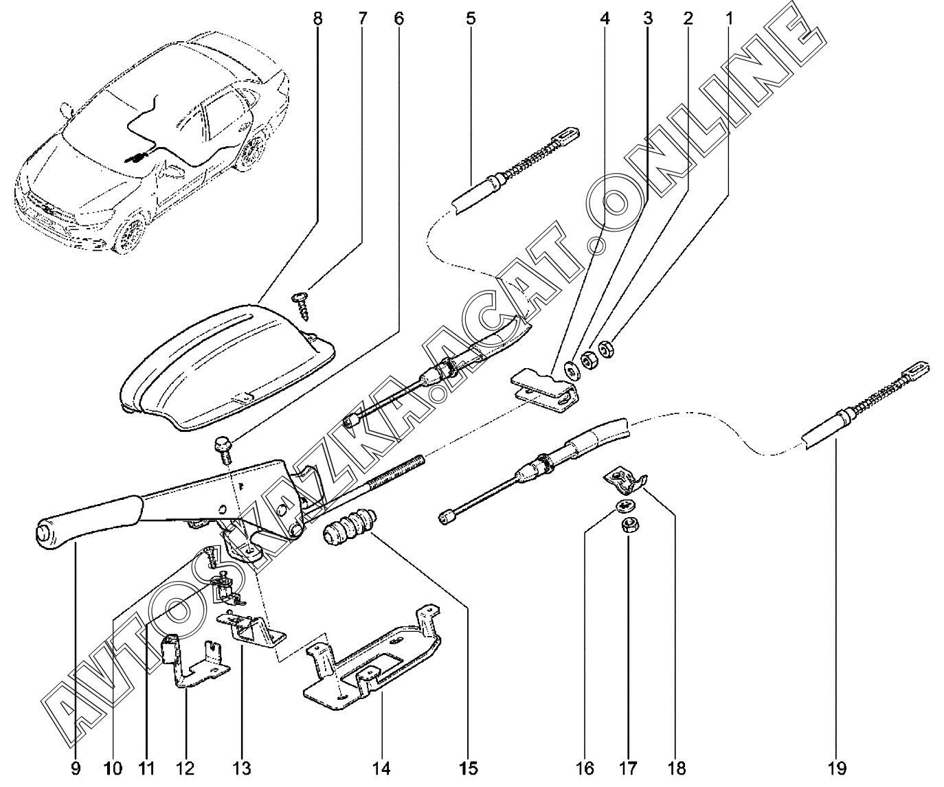 Механизм стояночного тормоза до 30.07.2018 ВАЗ Granta (2190, 2191 Lada Granta (седан, лифтбек, хэтчбек, универсал, FL, CROSS))