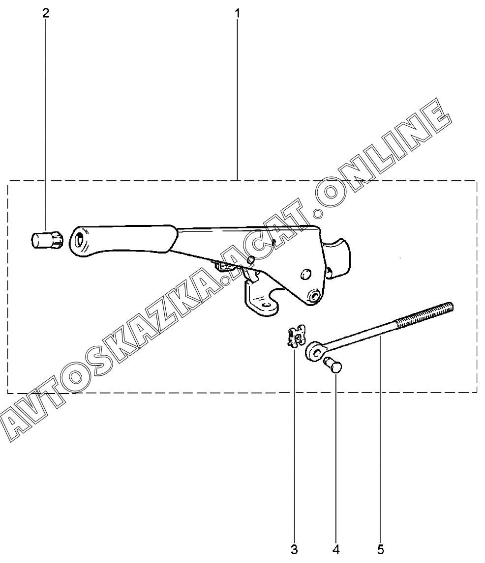 | Название детали: | Рычаг ручного привода тормоза с тягой в сборе |