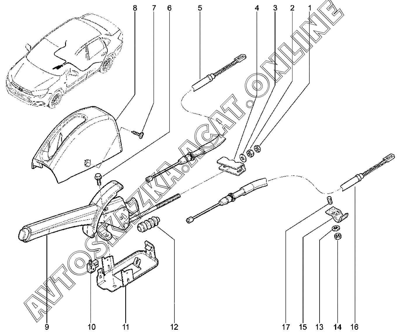 Механизм стояночного тормоза (FL) с 30.07.2018 ВАЗ Granta (2190, 2191 Lada Granta (седан, лифтбек, хэтчбек, универсал, FL, CROSS))