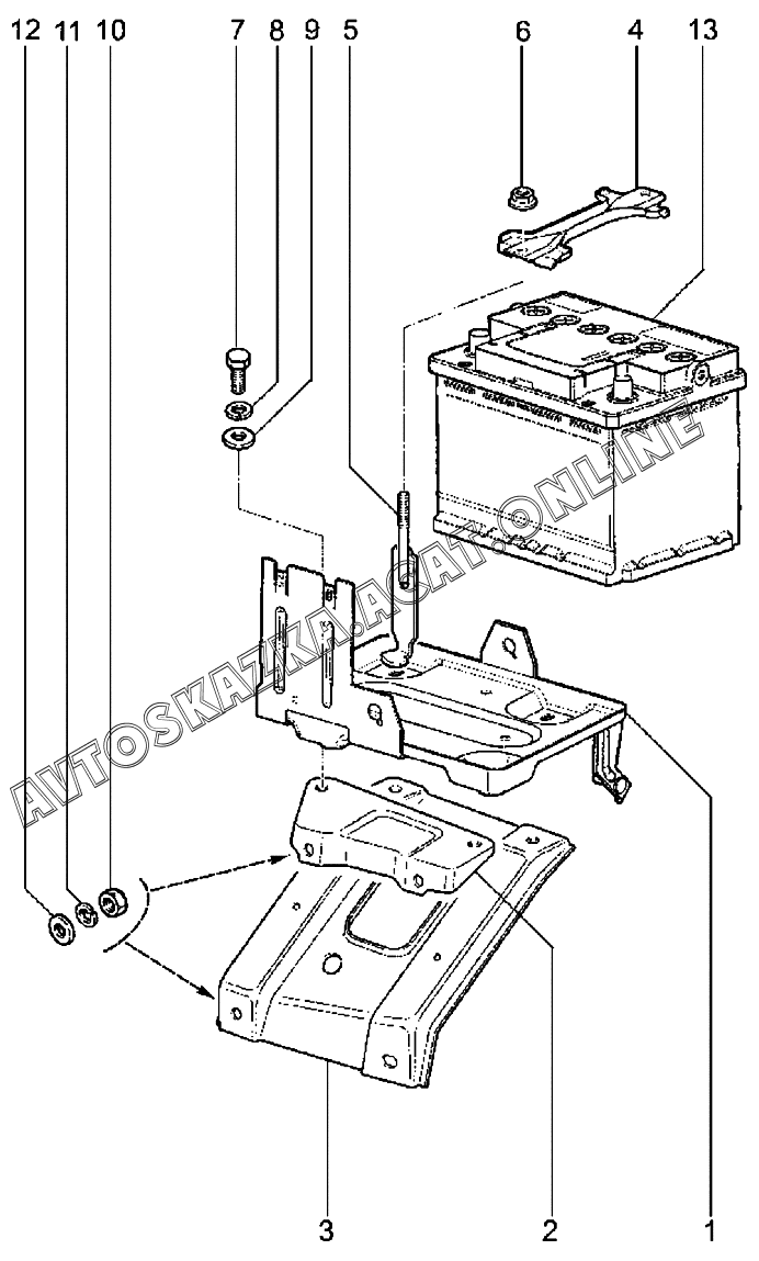 | Название детали: | Планка крепления аккумуляторной батареи |