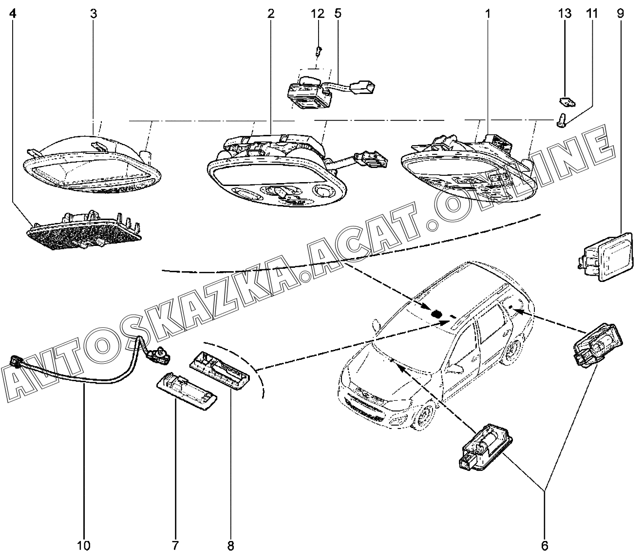 Плафоны освещения ВАЗ Granta (2190, 2191 Lada Granta (седан, лифтбек, хэтчбек, универсал, FL, CROSS))