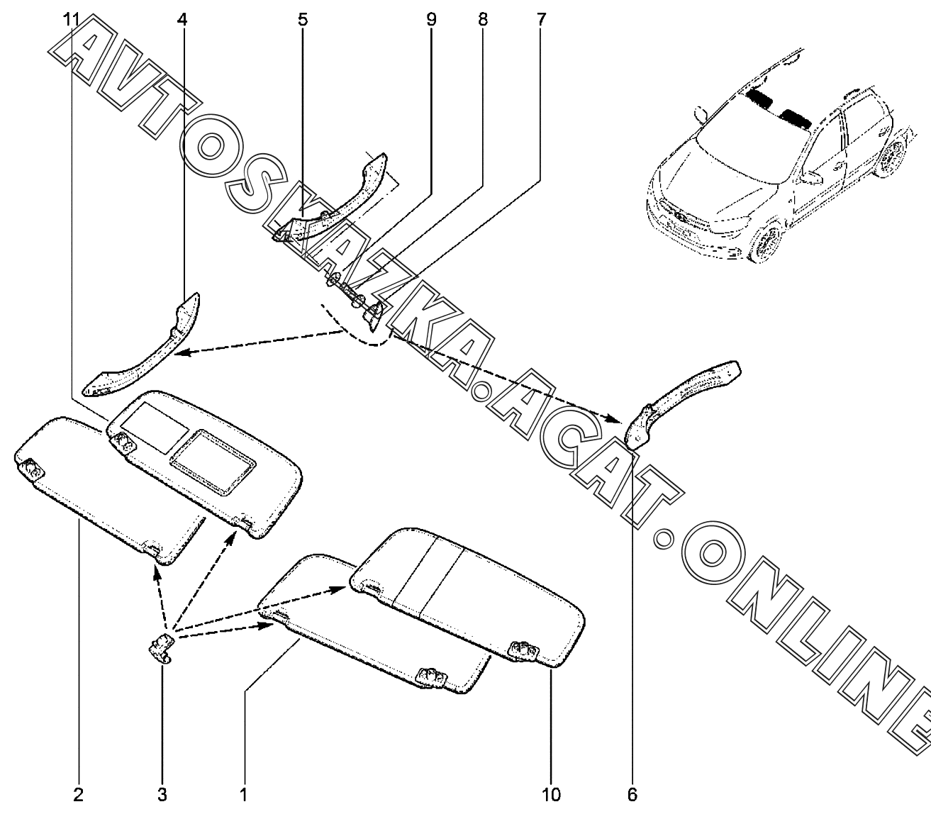 Противосолнечные козырьки, поручни ВАЗ Granta (2190, 2191 Lada Granta (седан, лифтбек, хэтчбек, универсал, FL, CROSS))