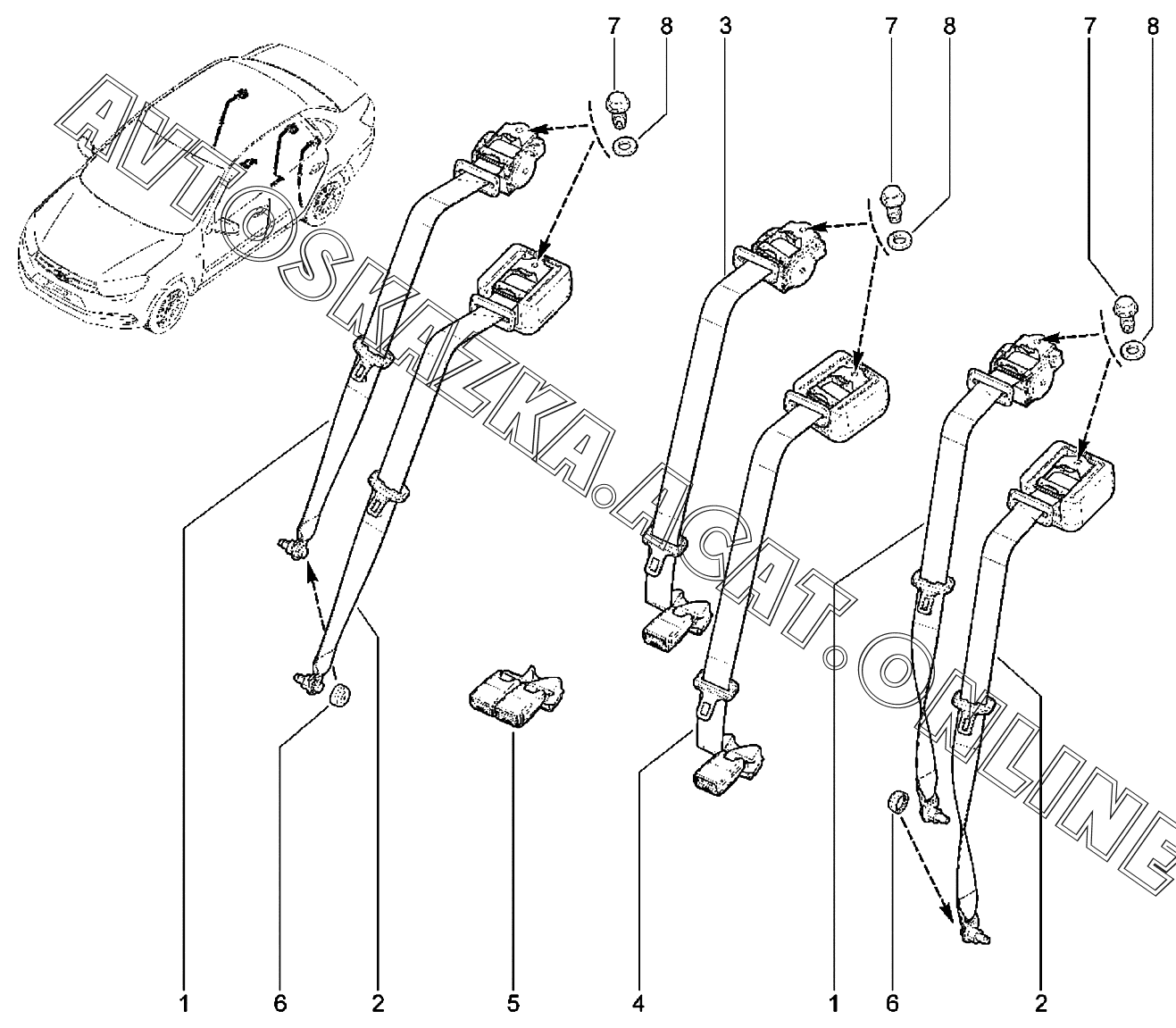 | Название детали: | Ремень безопасности задний боковой с преднатяжителем |