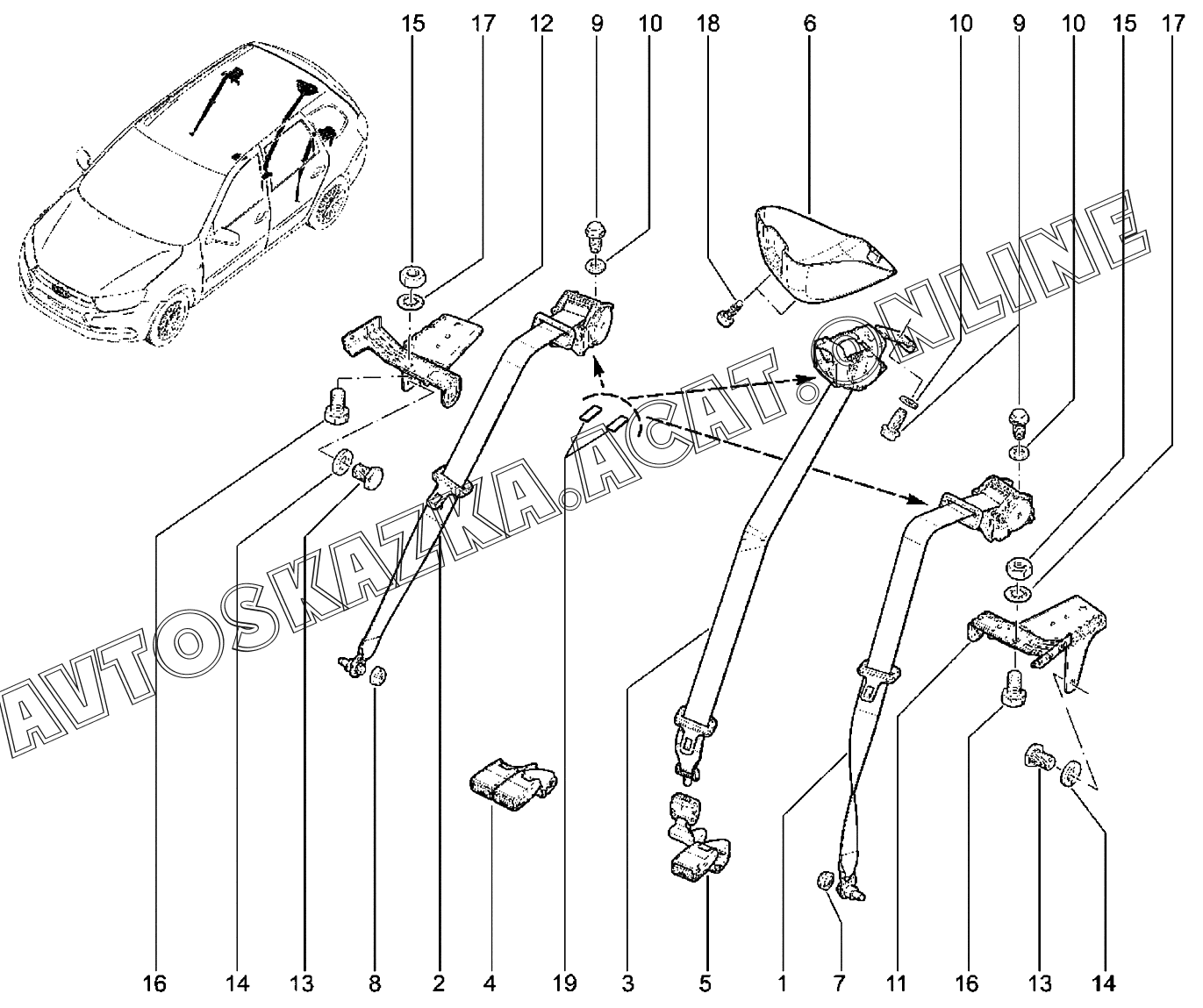 | Название детали: | Ремень безопасности задний средний |