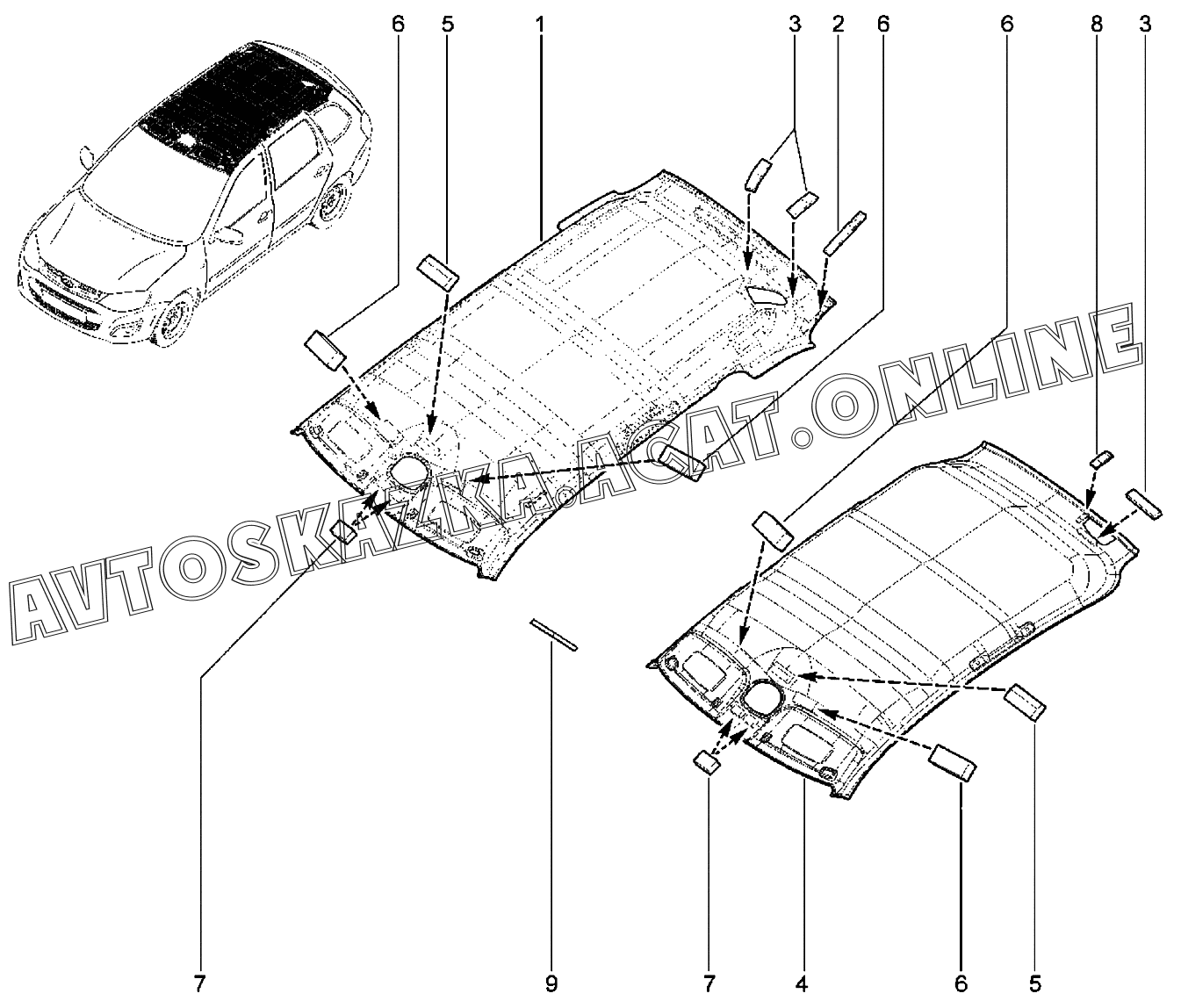 | Название детали: | Обивка крыши (универсал, без шумоизоляции) |