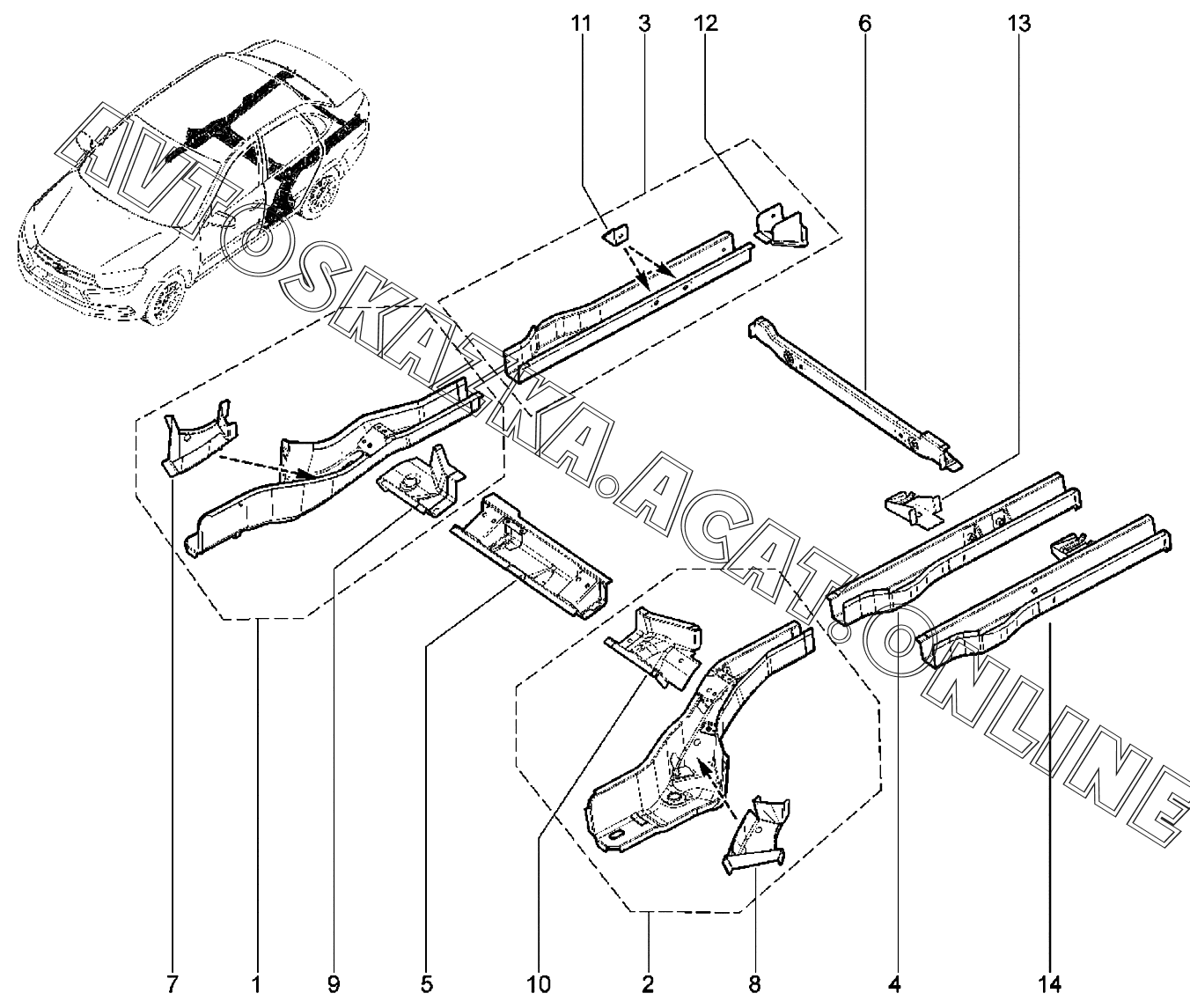 Каркас заднего пола (седан, лифтбек) ВАЗ Granta (2190, 2191 Lada Granta (седан, лифтбек, хэтчбек, универсал, FL, CROSS))