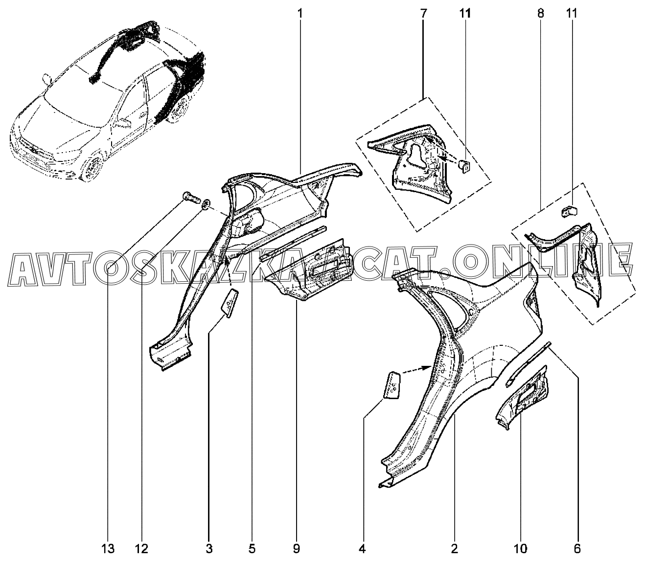 | Название детали: | Крыло заднее правое в сборе |