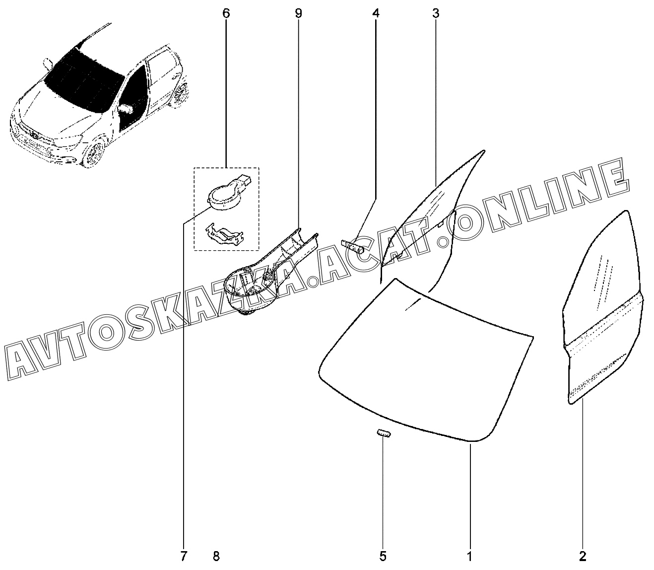 Стекла ветрового окна и передних дверей ВАЗ Granta (2190, 2191 Lada Granta (седан, лифтбек, хэтчбек, универсал, FL, CROSS))