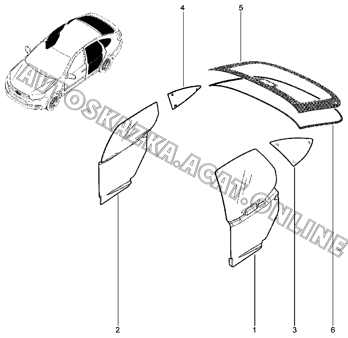 Стекла задних дверей и задка (лифтбек) ВАЗ Granta (2190, 2191 Lada Granta (седан, лифтбек, хэтчбек, универсал, FL, CROSS))