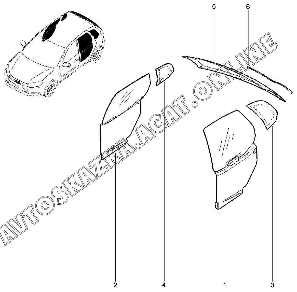 Стекла задних дверей и задка (хэтчбек) (FL) с 30.07.2018 ВАЗ Granta (2190, 2191 Lada Granta (седан, лифтбек, хэтчбек, универсал, FL, CROSS))