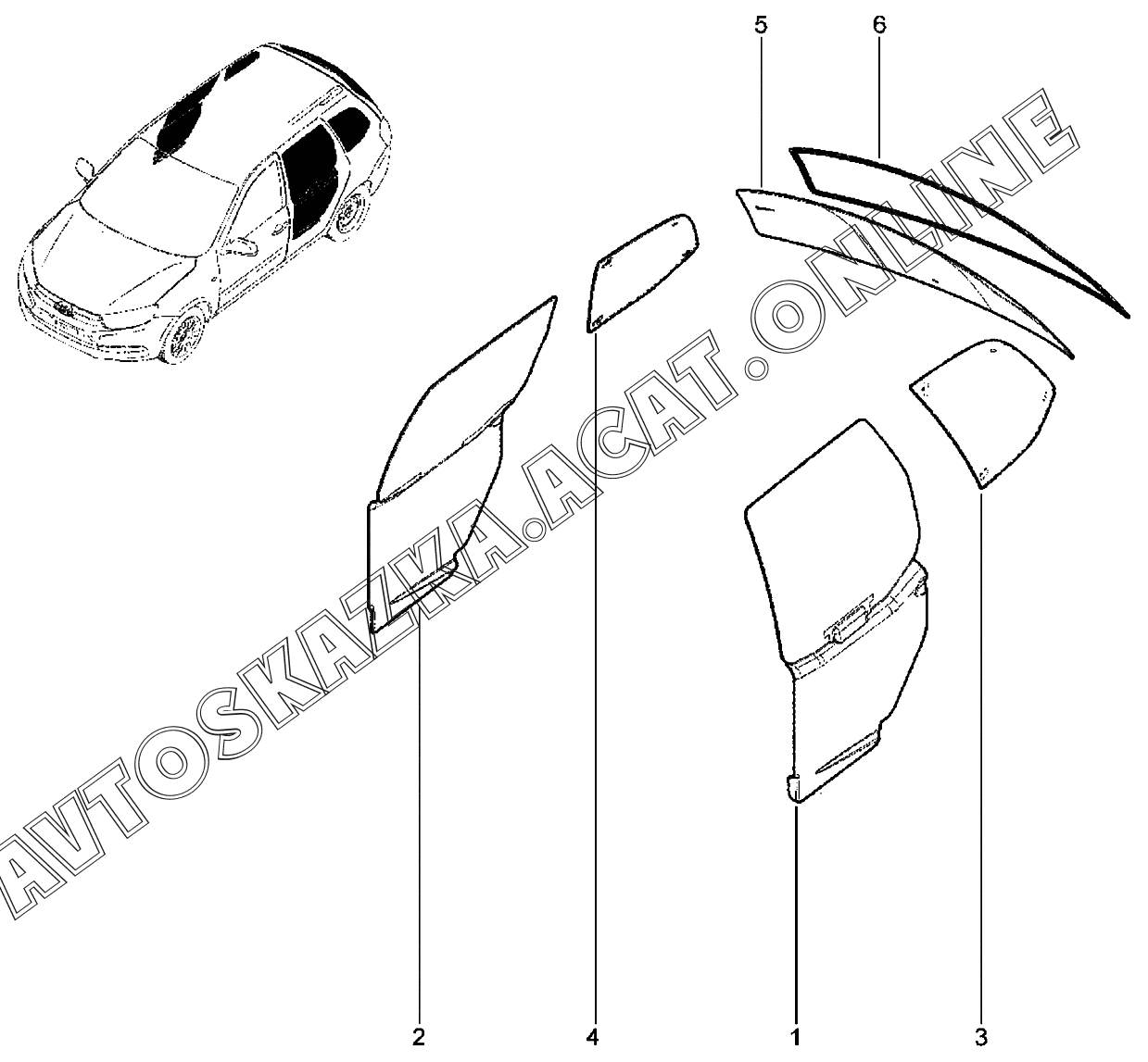 Стекла задних дверей и задка (универсал) (FL) с 30.07.2018 ВАЗ Granta (2190, 2191 Lada Granta (седан, лифтбек, хэтчбек, универсал, FL, CROSS))