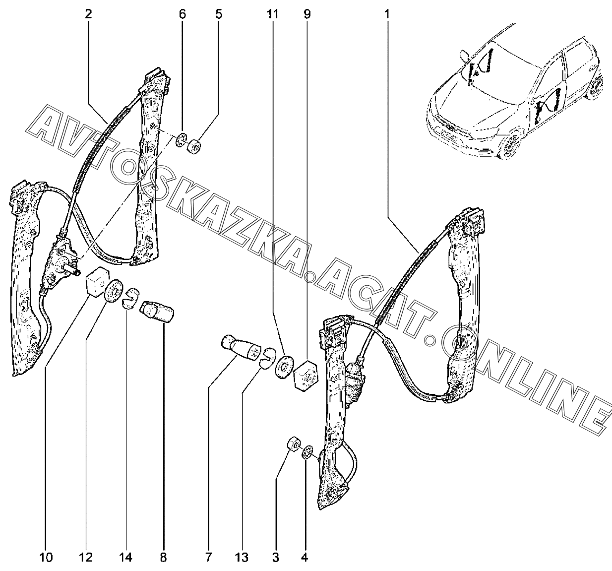 Механические стеклоподъемники передних дверей ВАЗ Granta (2190, 2191 Lada Granta (седан, лифтбек, хэтчбек, универсал, FL, CROSS))