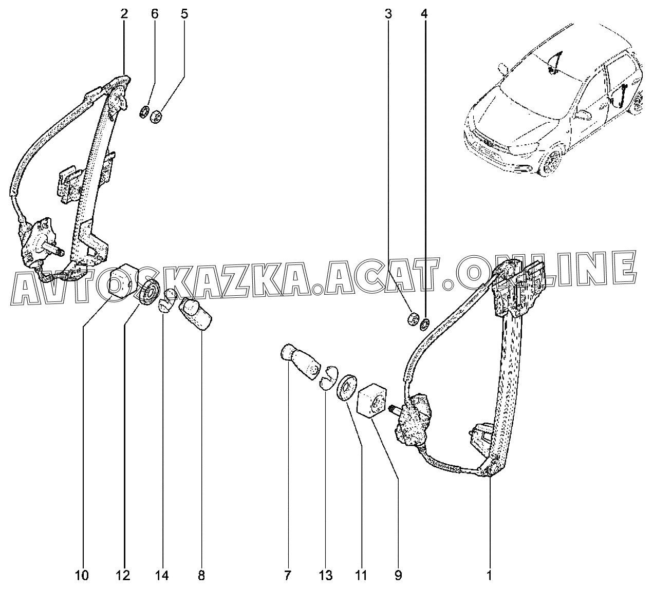 Механические стеклоподъемники задних дверей ВАЗ Granta (2190, 2191 Lada Granta (седан, лифтбек, хэтчбек, универсал, FL, CROSS))